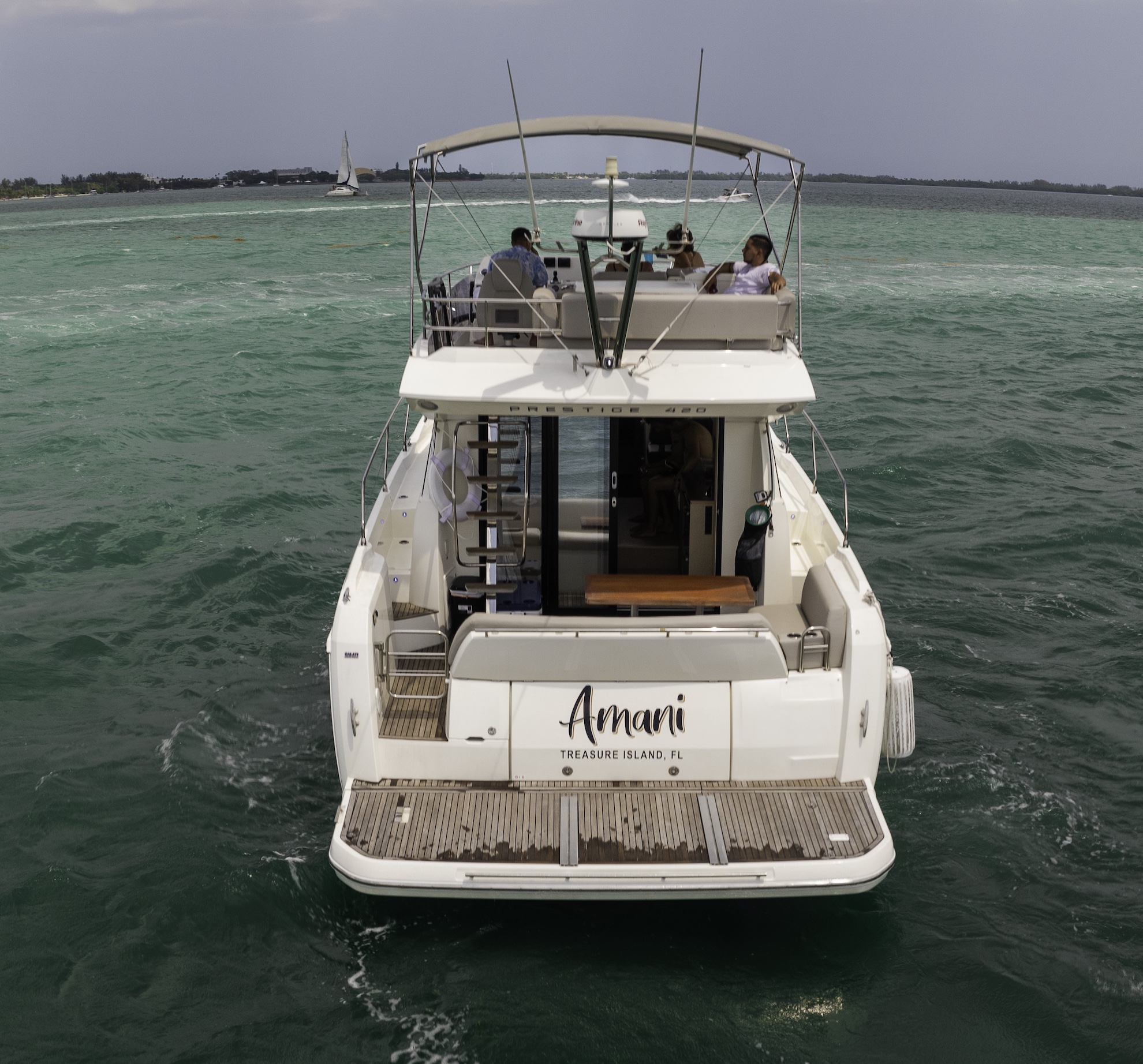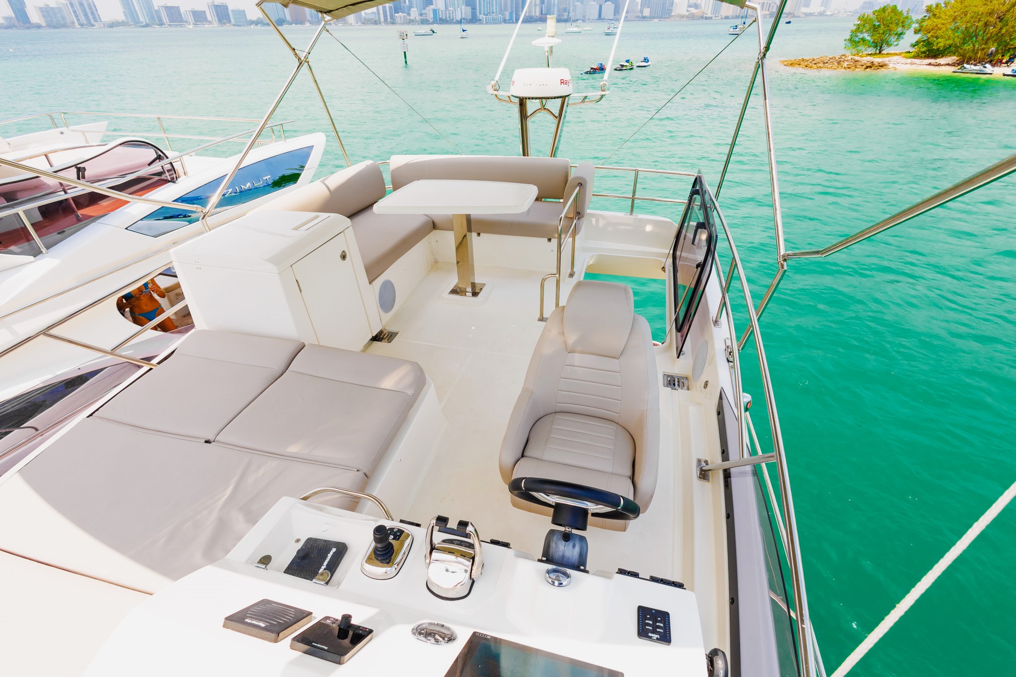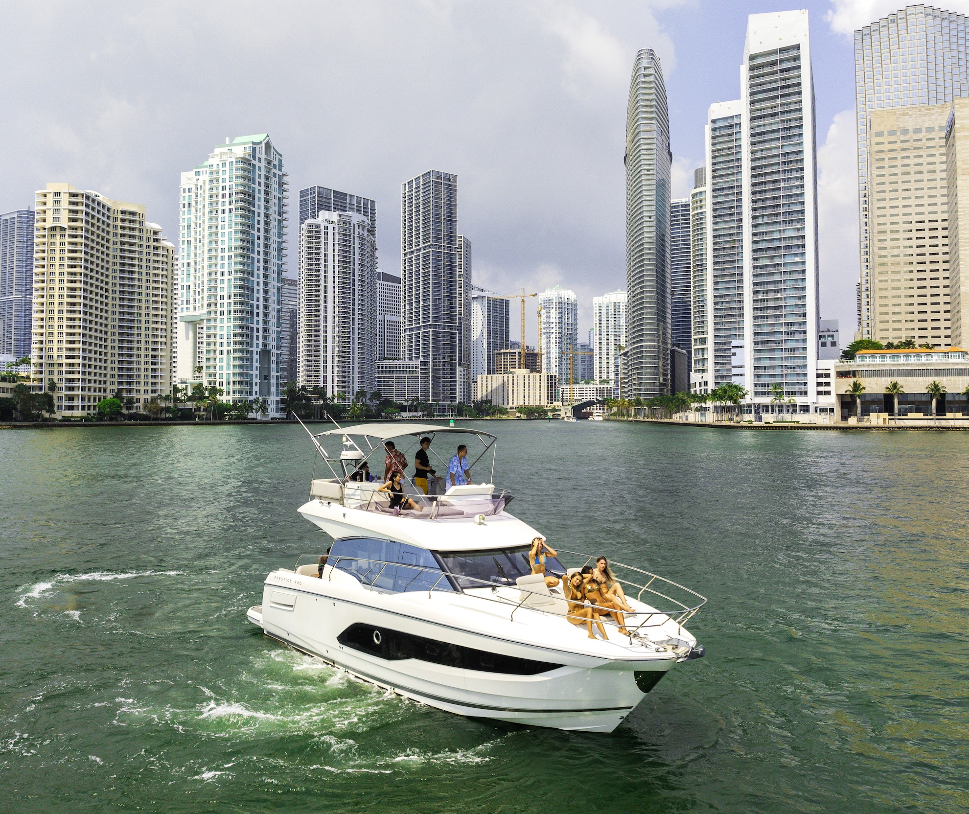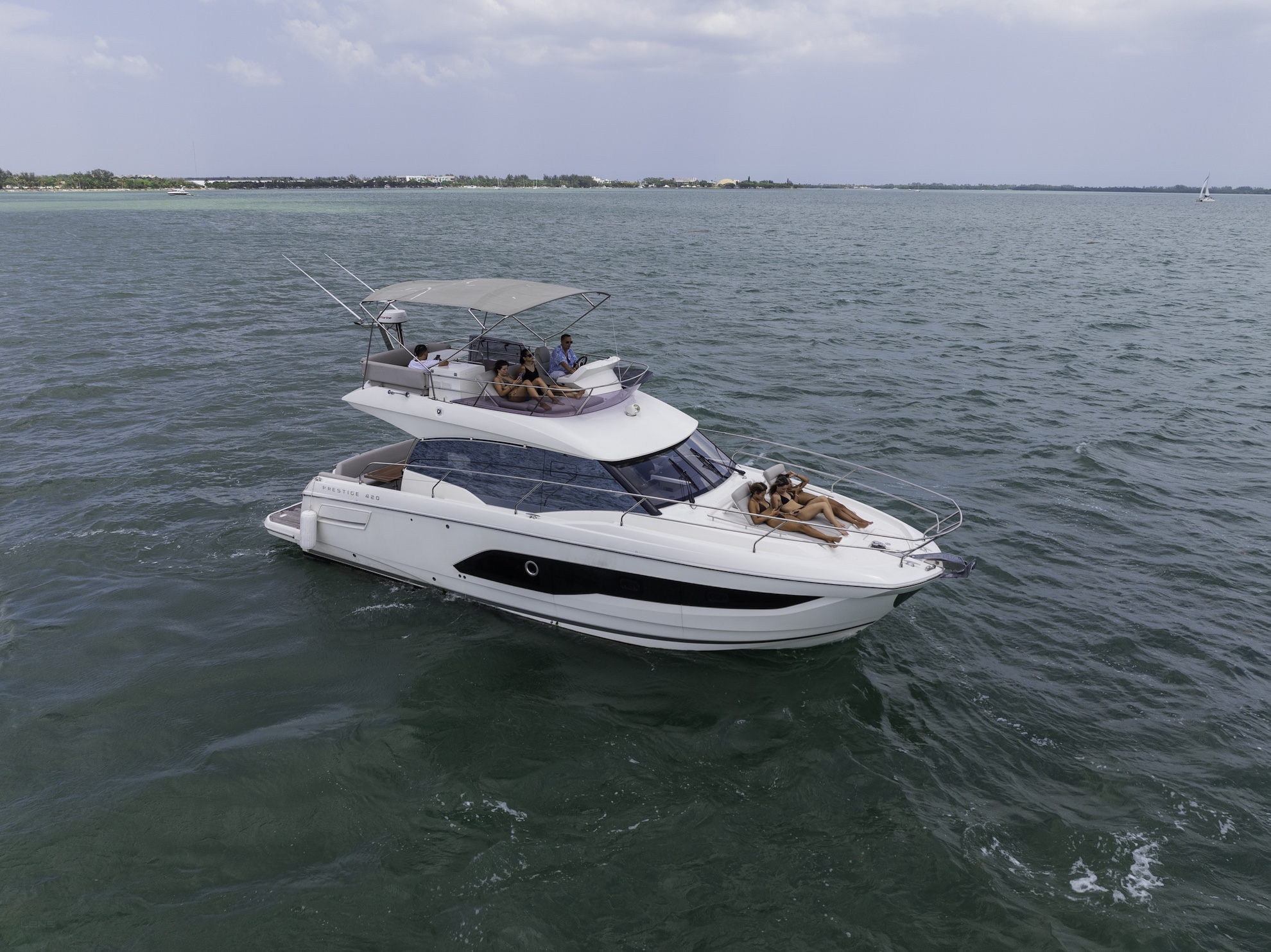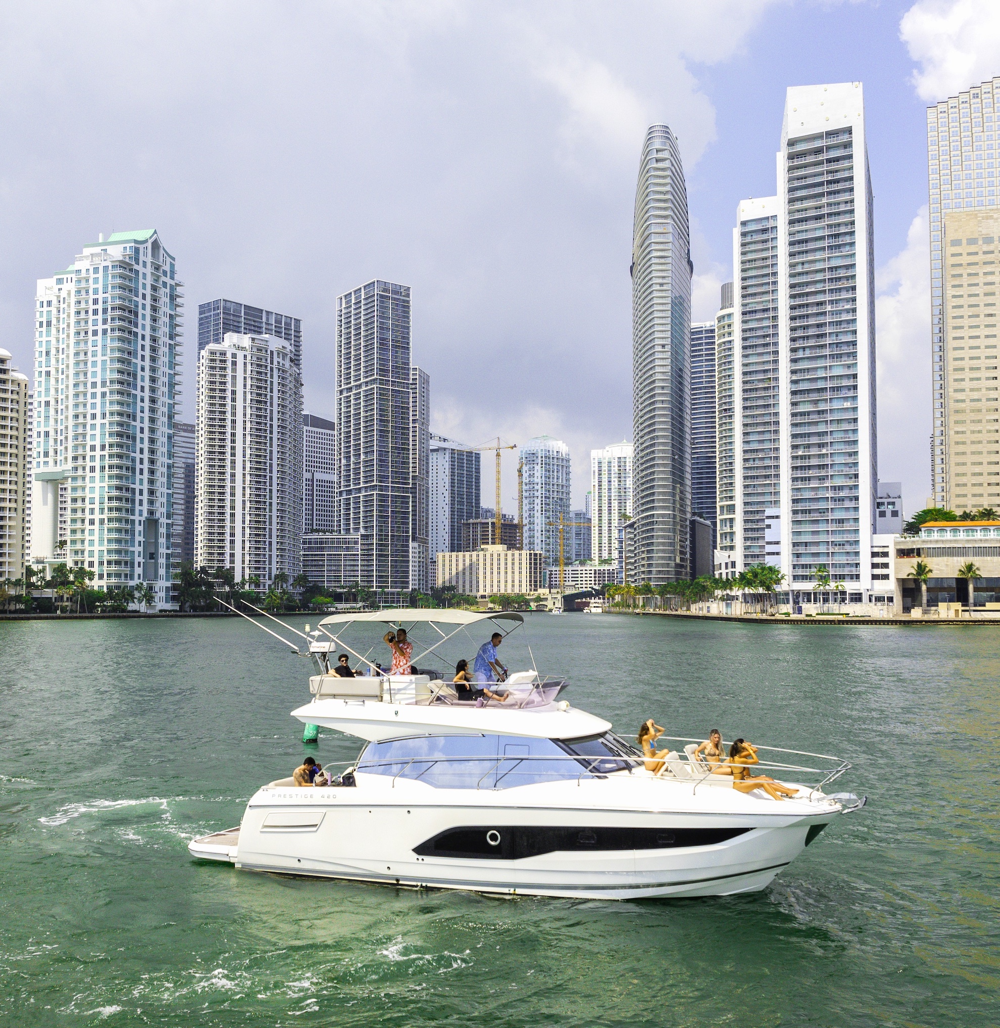 Step aboard the Prestige 46 feet yacht, where European elegance meets Miami sophistication.