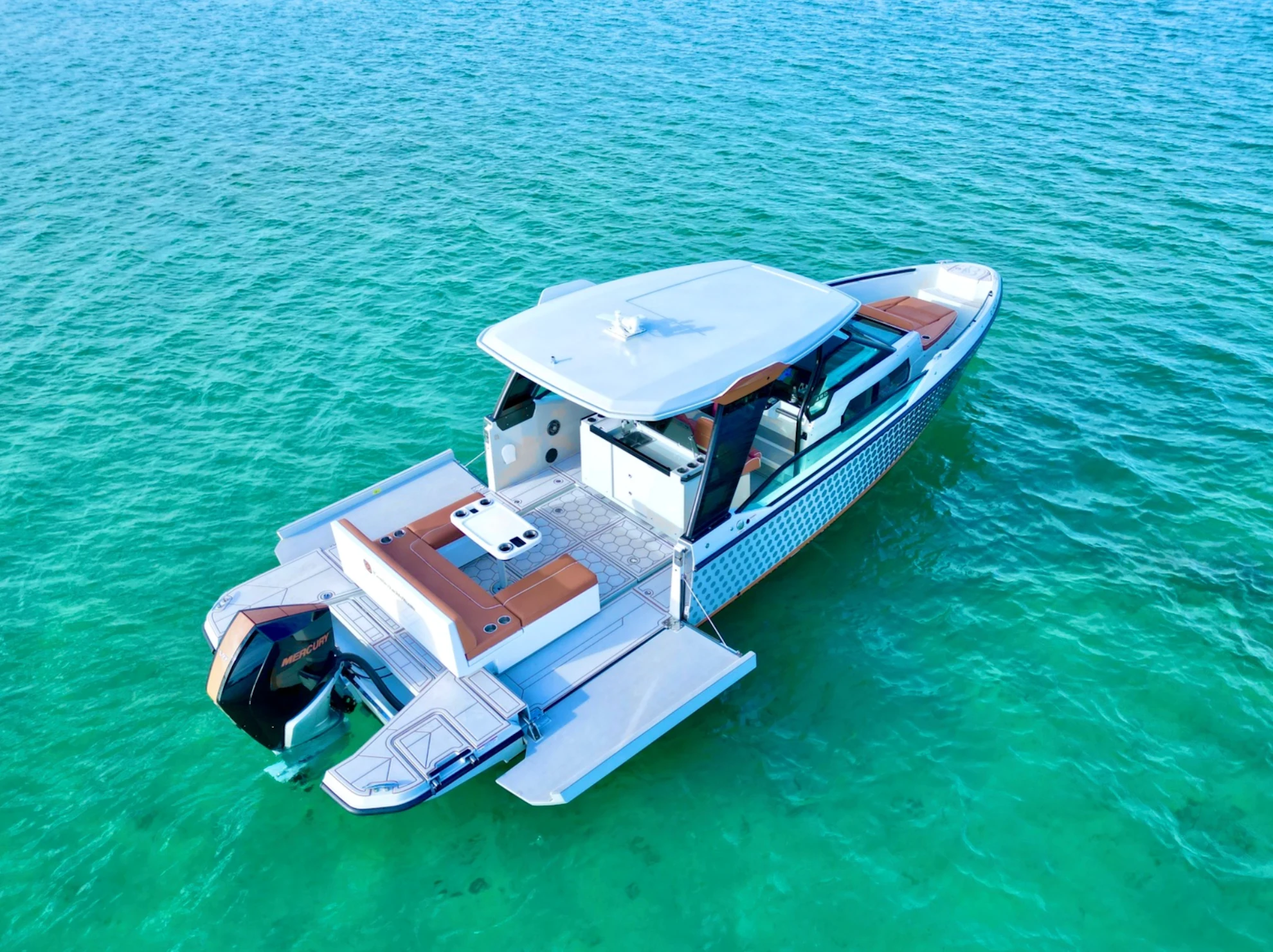 The Saxdor 32 is built for those who want the best of both worlds - sporty performance and refined comfort. Its layout maximizes space for sunbathing, relaxing, and socializing under the Miami sun.